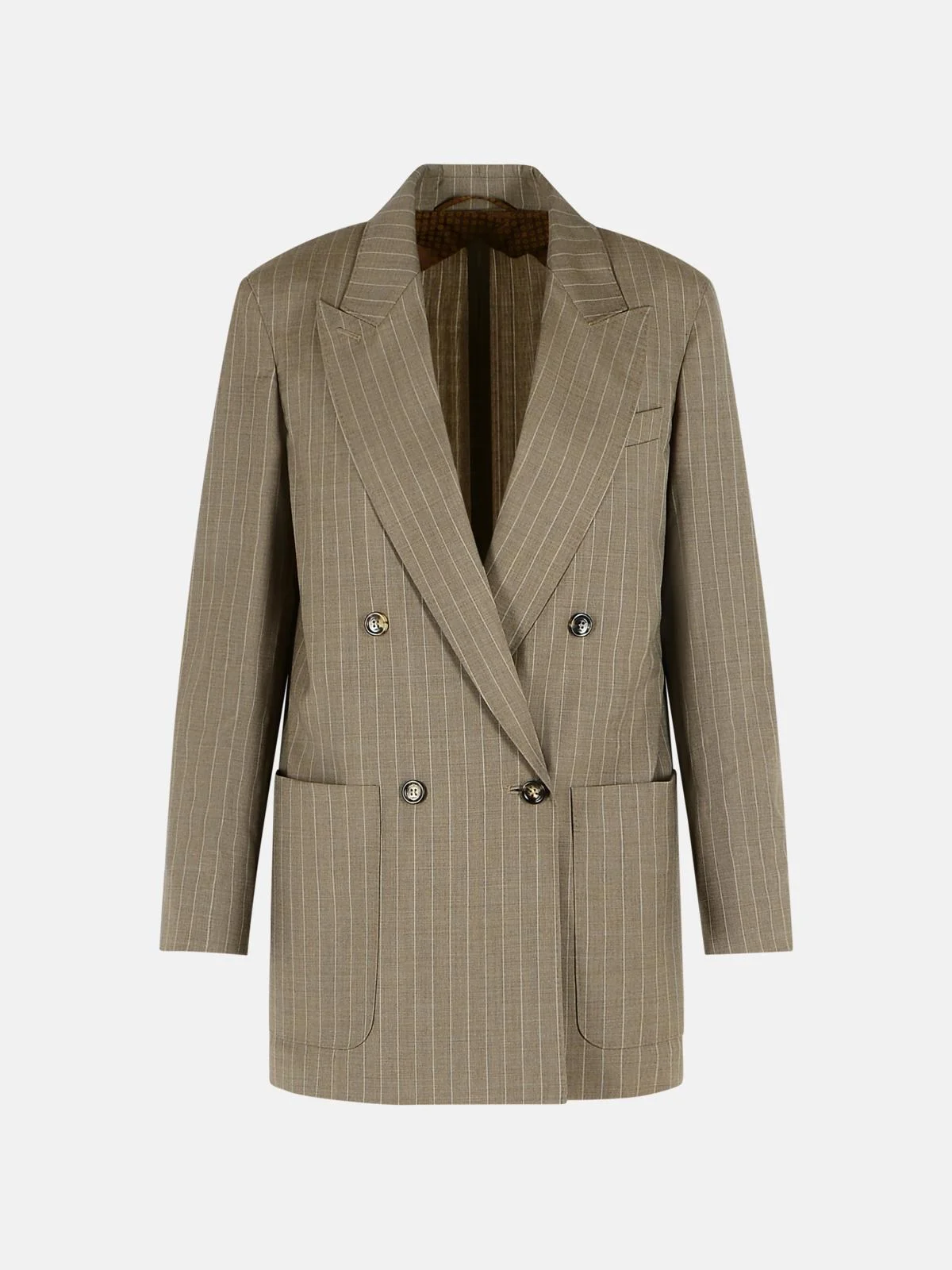 OVERSIZE BLAZER IN HAZELNUT PINSTRIPED WOOL TELA