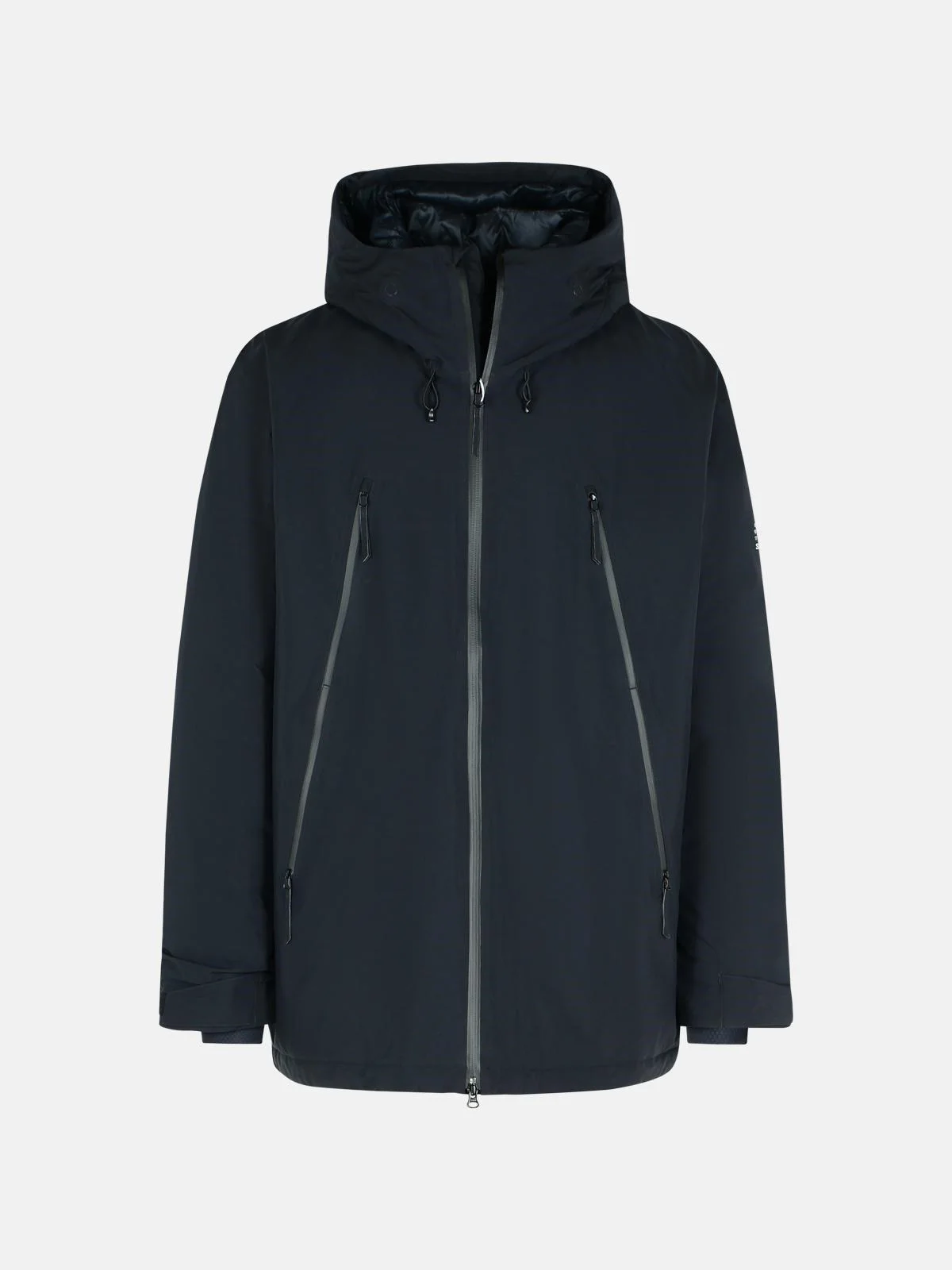 Manufacture code: SH0AM0067 M35594 900 Retail code: SH0AM0067 M35594 900 Black polyester down jacket, large adjustable hood with drawstring, padded raised neck, 'Water Repellent' zip closure, chest pockets with 'Water Repellent' zip, contrast logo print on the sleeve, cuffs with gaiters, Velcro adjustment on the wrist, drawstring at the hem Main: 100% nylon Made in Indonesia