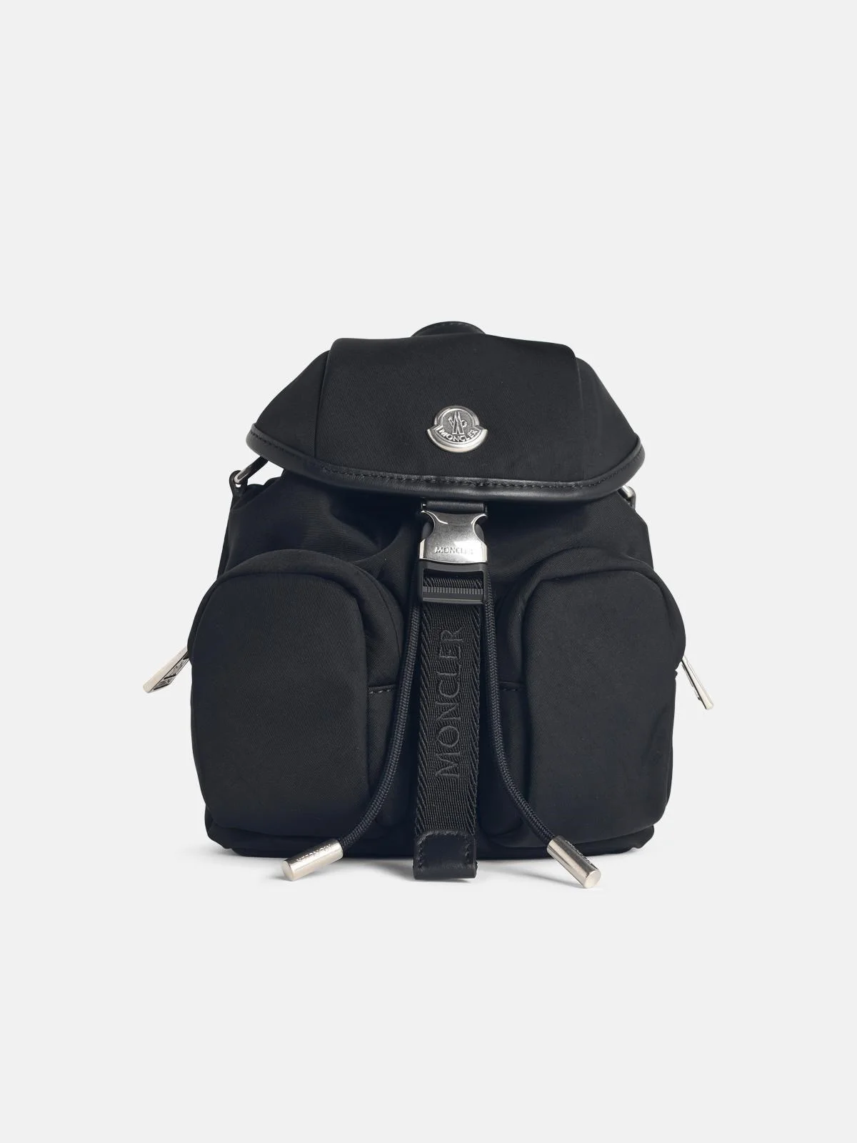 Manufacture code: 09B 5A000 03 M6980 999 Retail code: 09B 5A000 03 M6980 999 Made of recycled water-repellent nylon, nylon lining, tonal leather trim, leather handle, adjustable shoulder strap, buckle and drawstring closure, zip pockets, inner smartphone pocket\n21 x 17 x 9 cm Main: 52% nylon, 48% polyester Made in Italy