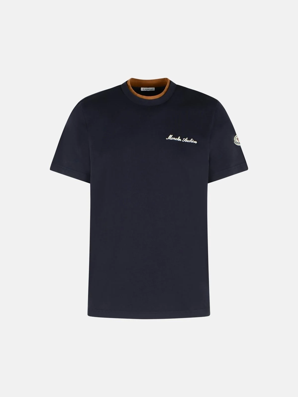 NAVY BLUE COTTON EMBROIDERED LOGO T-SHIRT