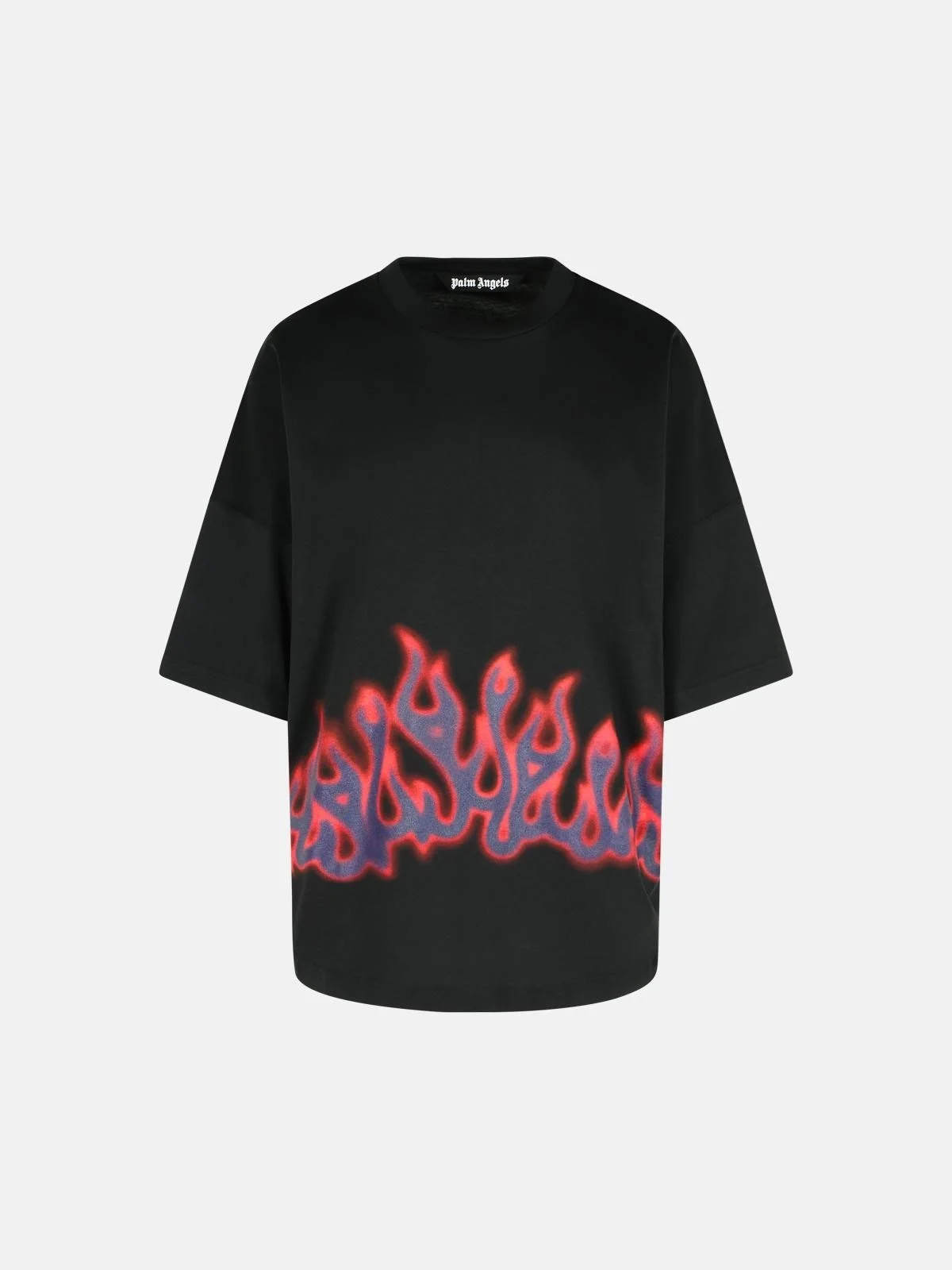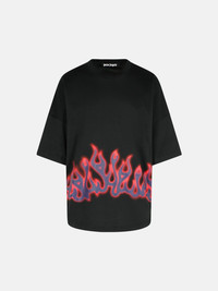 'FLAMES' BLACK COTTON T-SHIRT