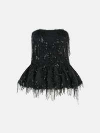 Manufacture code: 114621 100 Retail code: 114621 100 Sequins and beads decorated in tone, strapless, side hook and zip closure Main: 100% polyester Made in China