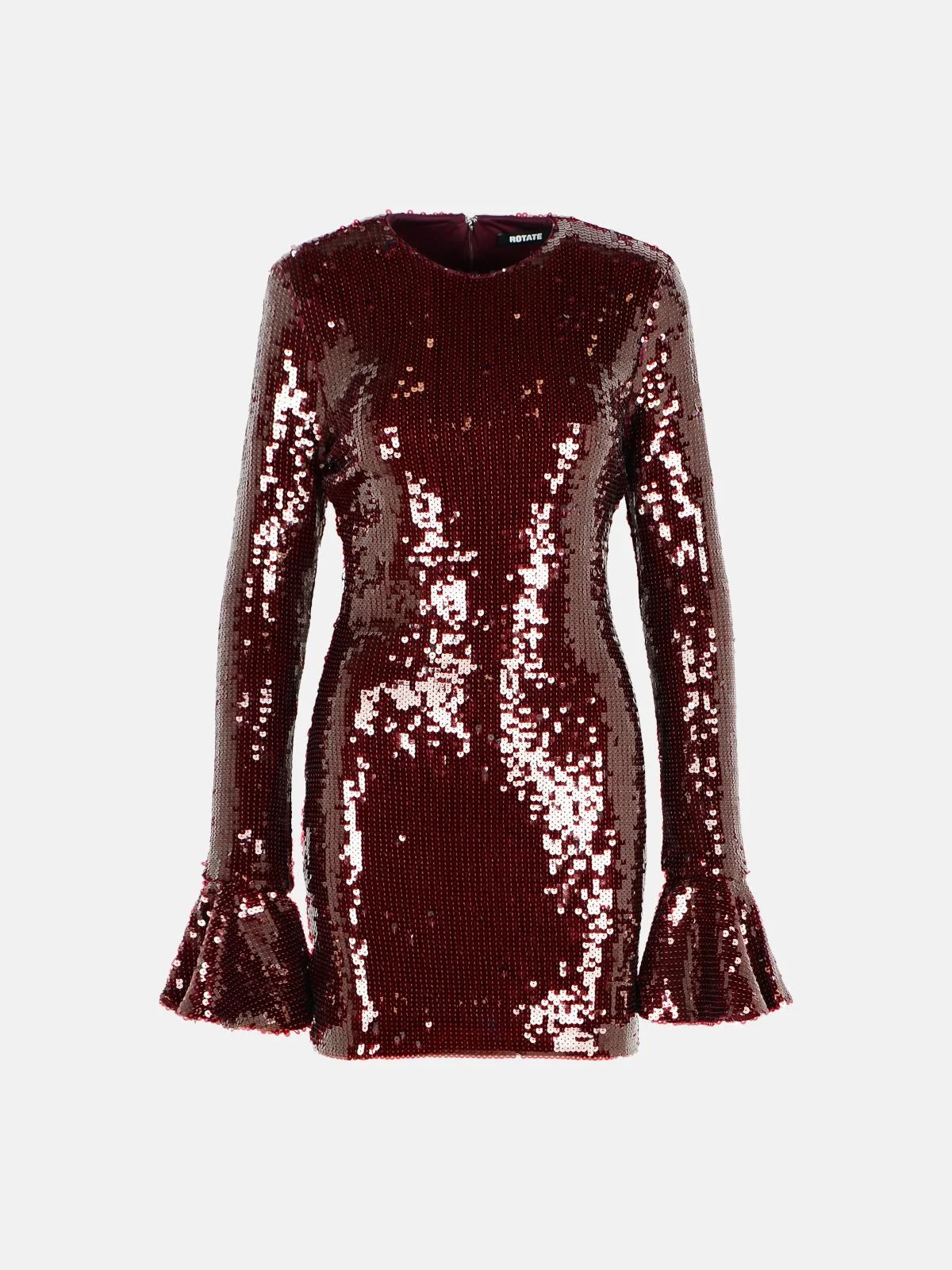 Manufacture code: 114614 2734 Retail code: 114614 2734 Lined entirely in sequins, crew neck, long sleeves with ruffles, back zip closure Main: 95% polyester, 5% elastane Made in China