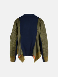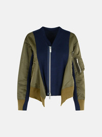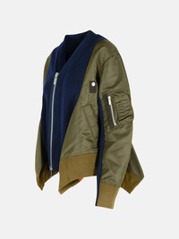 Manufacture code: 25-07996 532 Retail code: 25-07996 532 Made with green and blue panels, orange partial lining, V-neck, zip closure, snap button welt pockets, ribbed cuffs, asymmetrical hem Main: 57% cotton, 43% polyester Made in China
