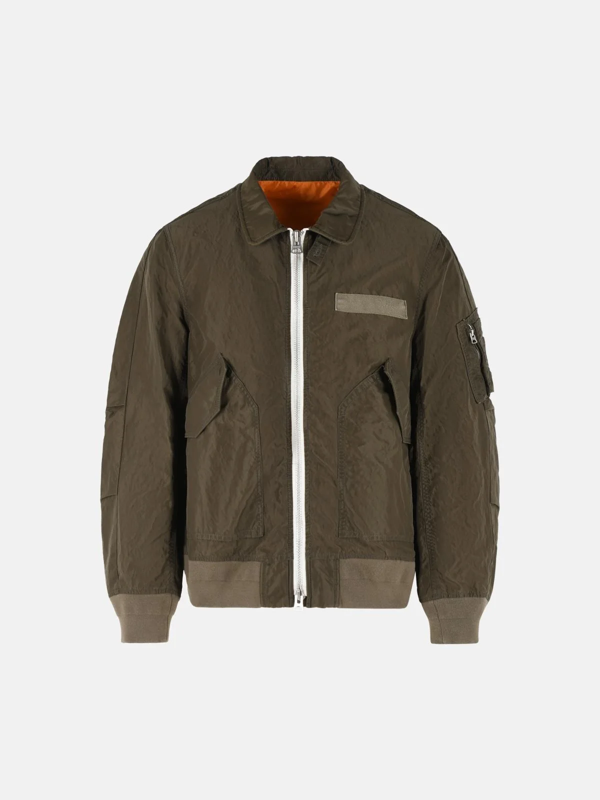 Manufacture code: 26-03913M 531 Retail code: 26-03913M 531 Rounded collar, zip closure, grosgrain details, flap and snap pockets, zip pocket on the sleeve, ribbed hem and cuffs, orange lining Main: 100% nylon Made in Japan