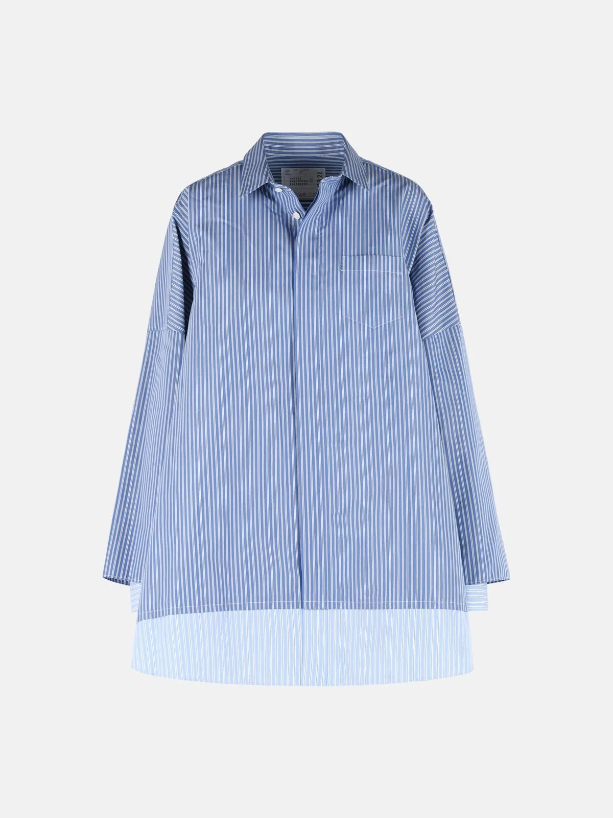 Manufacture code: 26-08328 421 Retail code: 26-08328 421 Striped pattern, pointed collar, concealed front buttoning, chest patch pocket, inner mesh sleeve with cuffs and button, light blue side inserts, side slits, back central crease Main: 65% polyester, 35% cotton Made in Japan