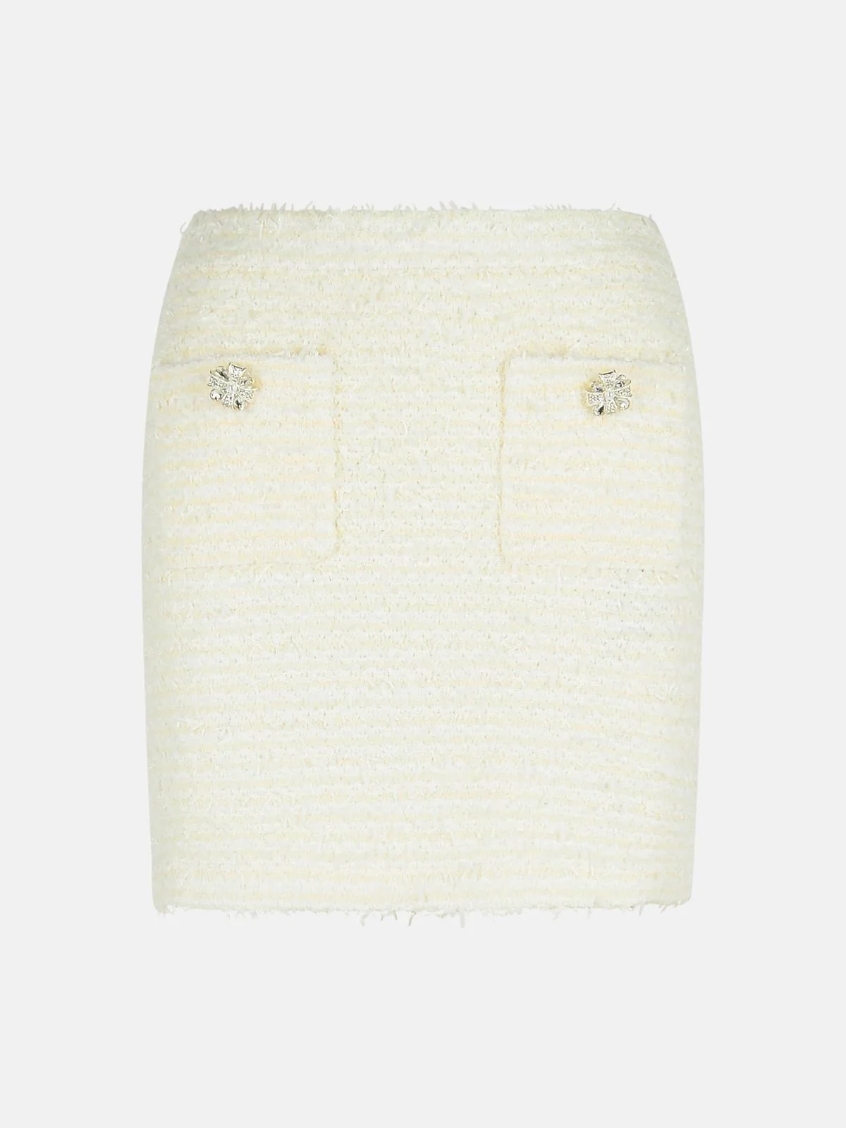 'BOUCLE' CREAM COTTON BLEND MINISKIRT