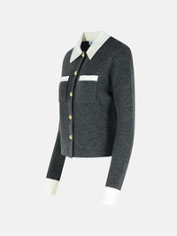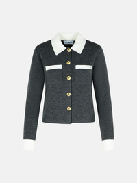 Manufacture code: PF25-048C-GR GREY Retail code: PF25-048C-GR GREY Ribbed pointed collar, front button closure, chest pockets with contrast trim, contrast cuffs, straight hem Main: 83% wool, 9% nylon, 7% alpaca, 1% elastane Made in China