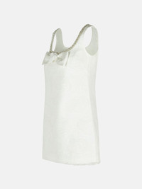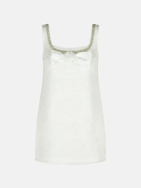 Manufacture code: PF25-036S-W WHITE Retail code: PF25-036S-W WHITE 'U' neckline finished with crystals, front decorative bow, tonal floral pattern, back hook closure and invisible zip Main: 100% nylon Made in China