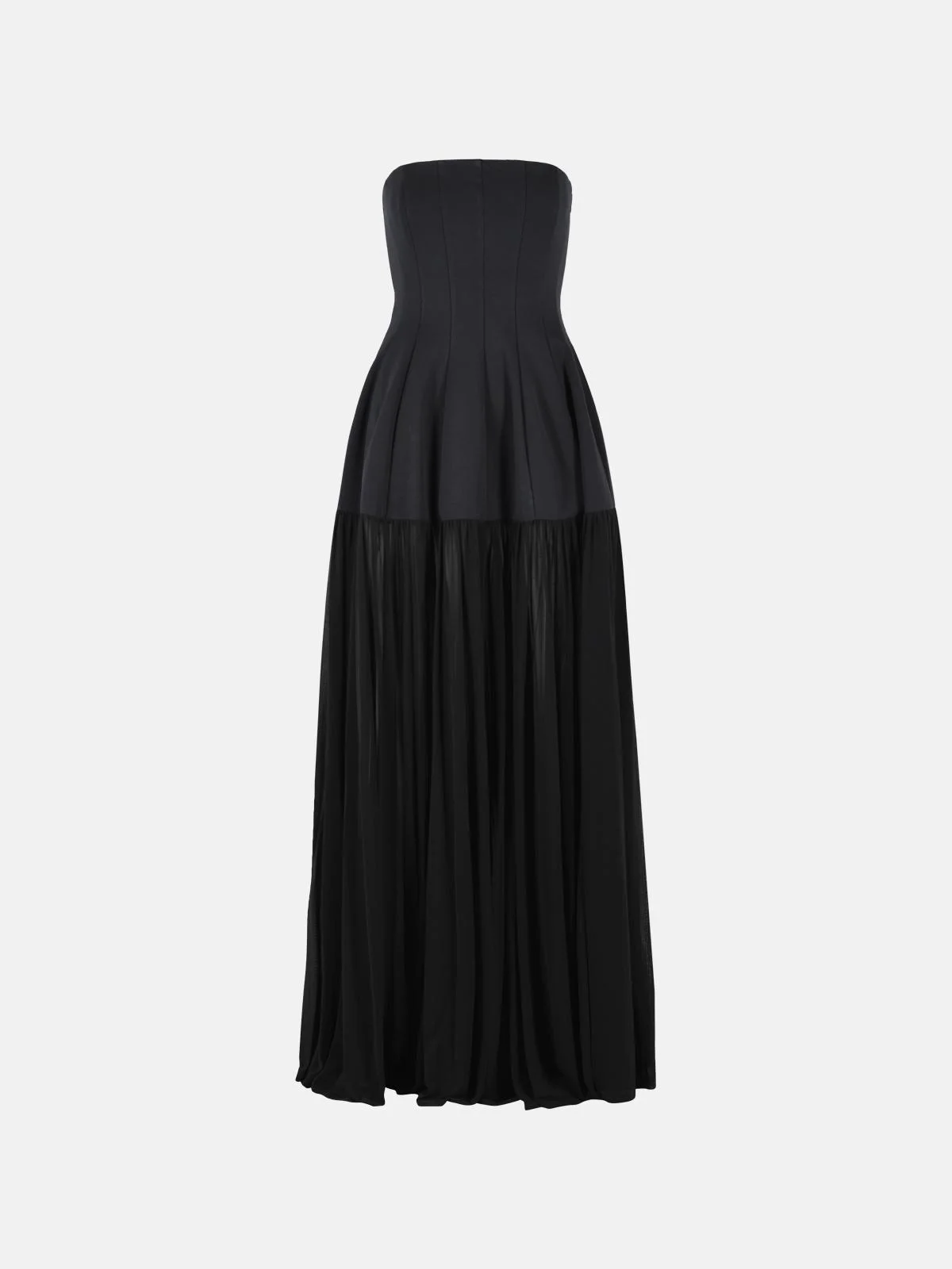Manufacture code: 126-1239-J BLACK Retail code: 126-1239-J BLACK Bustier with invisible back zip, structural stitching, curled skirt Main: 100% viscose Made in China