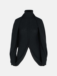 Manufacture code: 2522366033 003 Retail code: 2522366033 003 Wool blend sweater, regular fit, mock collar, central cut that opens at the hem, turned-up panels that come together in scarf, regular fit Main: 85% virgin wool, 15% nylon Made in Italy