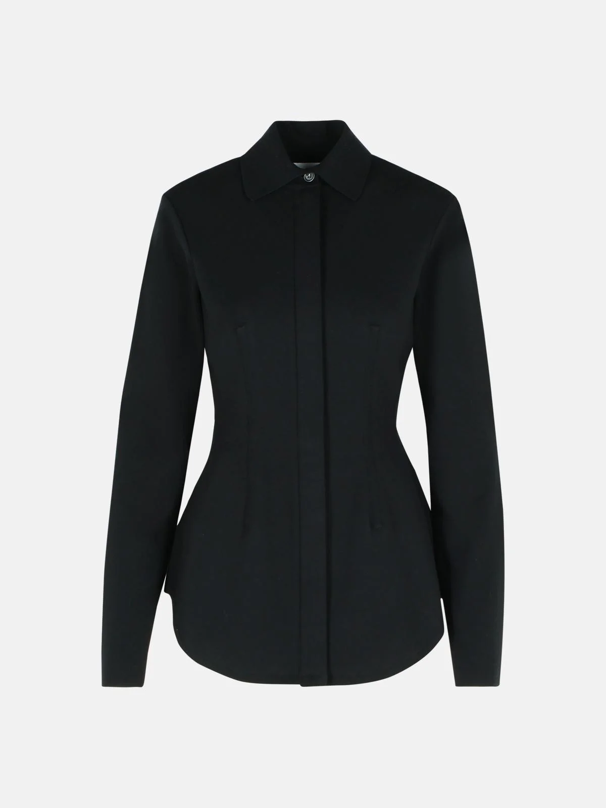 Manufacture code: 2522346063 001 Retail code: 2522346063 001 Stretch viscose knit shirt, snug waistband, shirt collar, concealed button closure with first visible button, deep torso pins, regular fit Main: 72% viscose, 28% polyester Made in Italy
