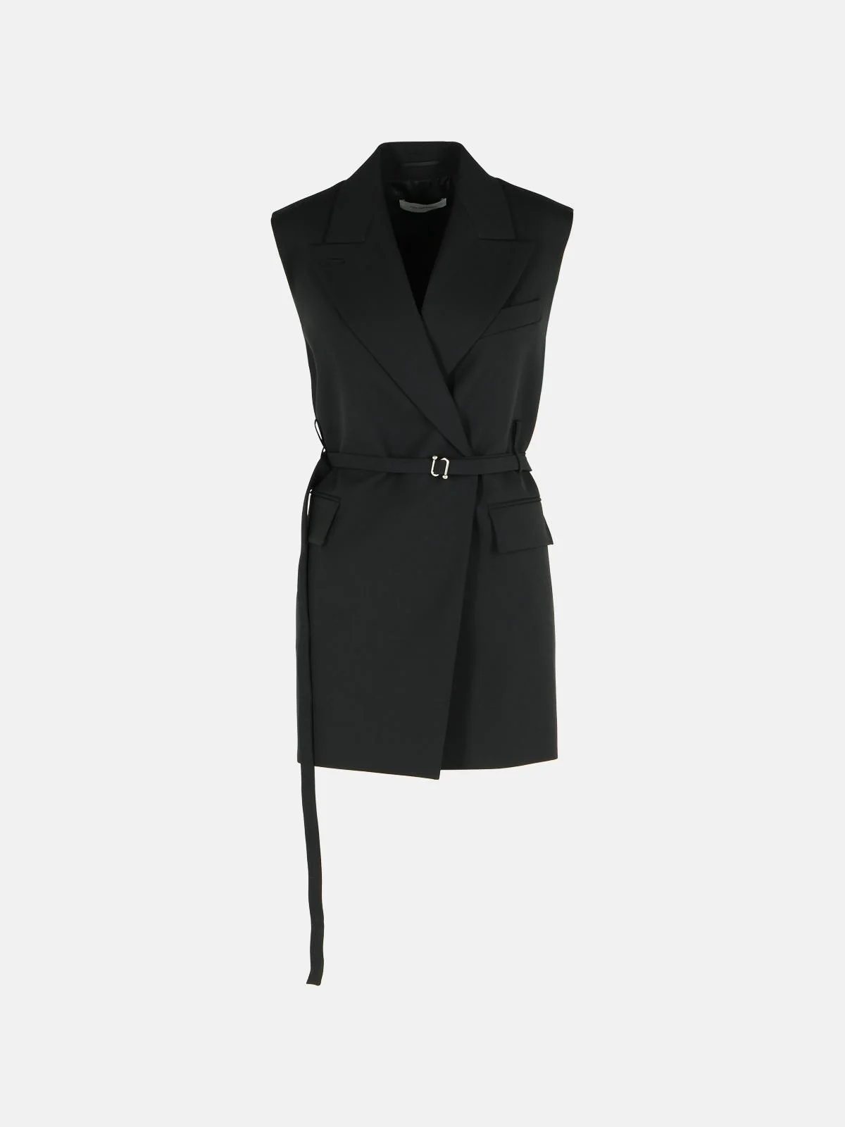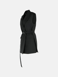 Manufacture code: 2522286011 003 Retail code: 2522286011 003 Sleeveless, thread-dyed pure wool canvas long blazer with lining, regular fit, peak lapel neckline, side flap pockets, low double-turn fabric belt, metal S-buckle, regular fit Main: 100% virgin wool Made in Italy