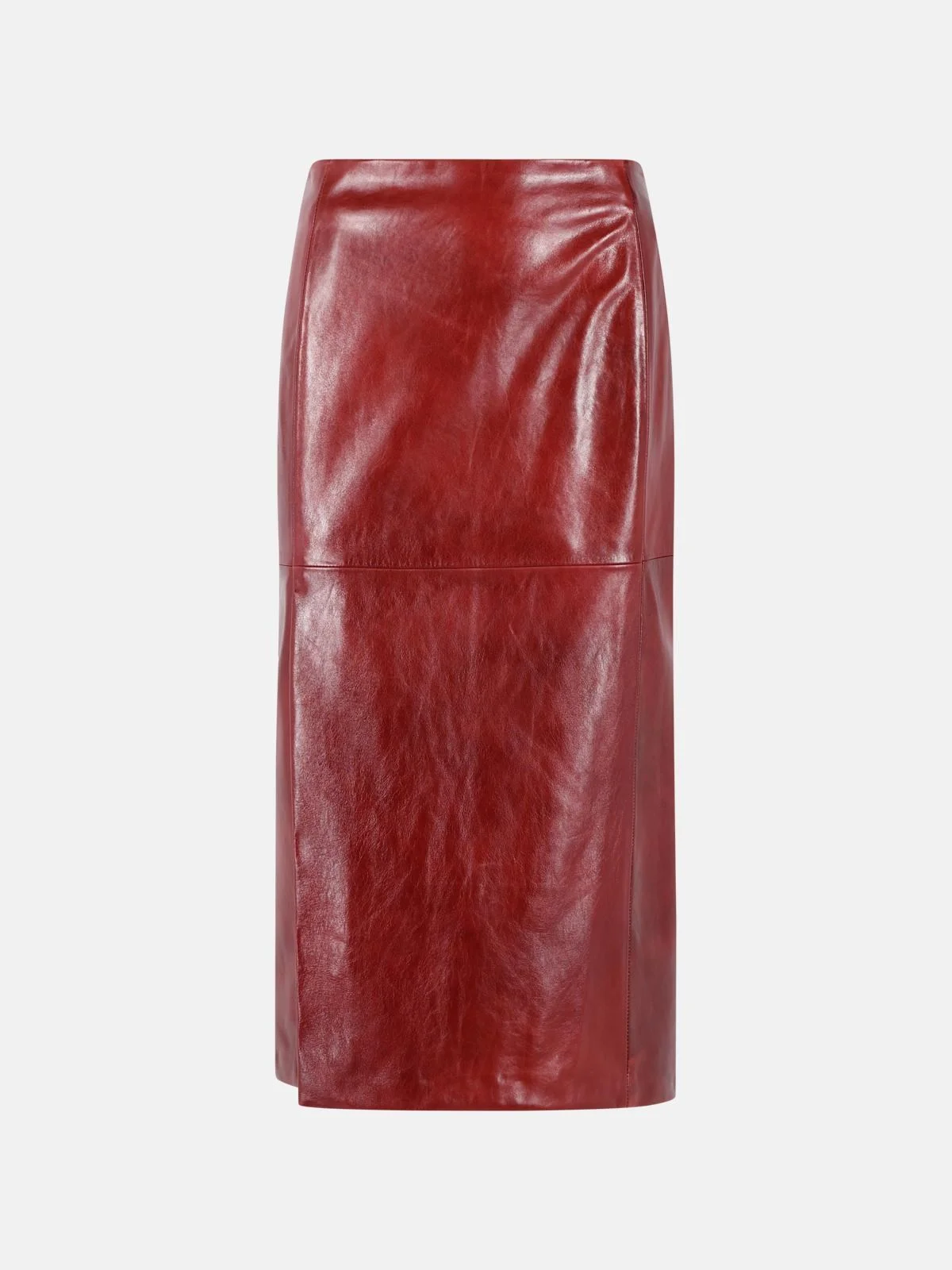 'COMMA' BURGUNDY LEATHER STRAIGHT SKIRT
