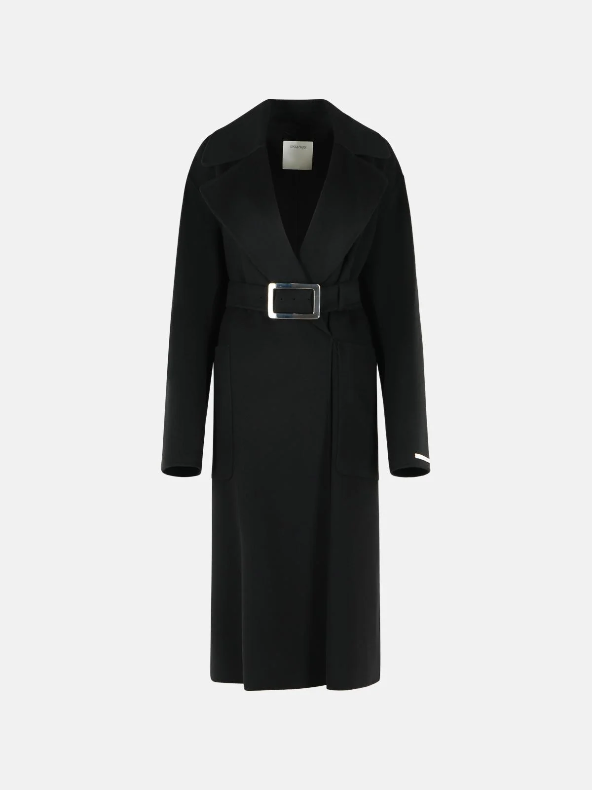 Manufacture code: 2612011041 013 Retail code: 2612011041 013 Pure wool double coat, wide lapel neckline, fabric belt and metal buckle closure, patch side pockets, loose fit Main: 100% virgin wool Made in Italy