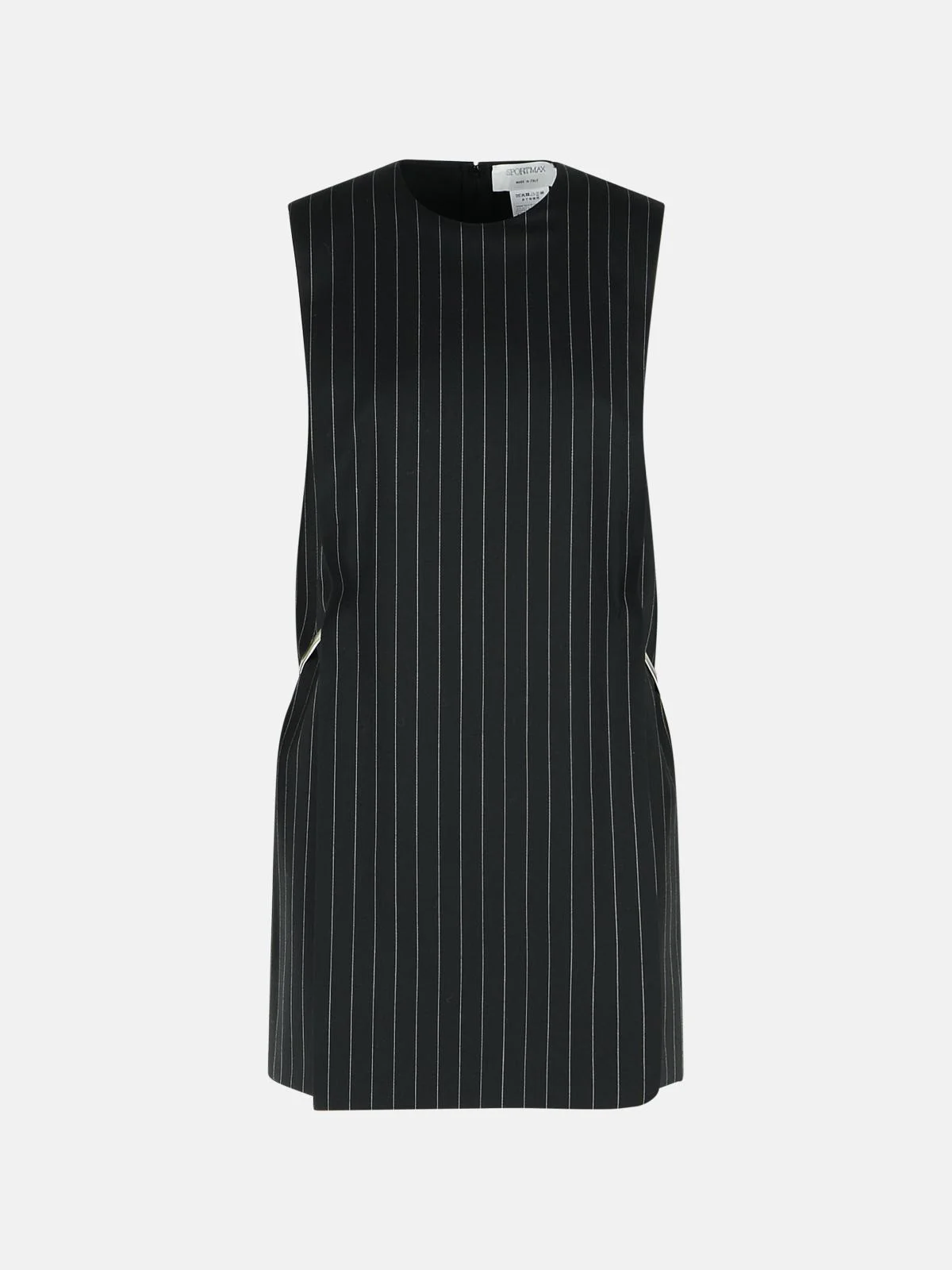 Manufacture code: 2612221071 004 Retail code: 2612221071 004 Round neckline, vertical striped pattern, double layer at the front, sleeveless, back zip closure, straight silhouette Main: 54% virgin wool, 44% polyester, 2% elastane Made in Italy