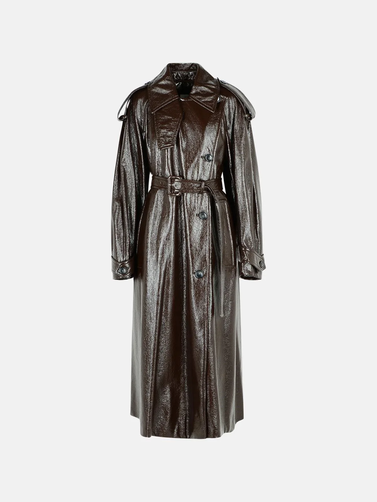 LONG 'BAIRO' PATENT EFFECT TRENCH COAT IN COFFEE COTTON