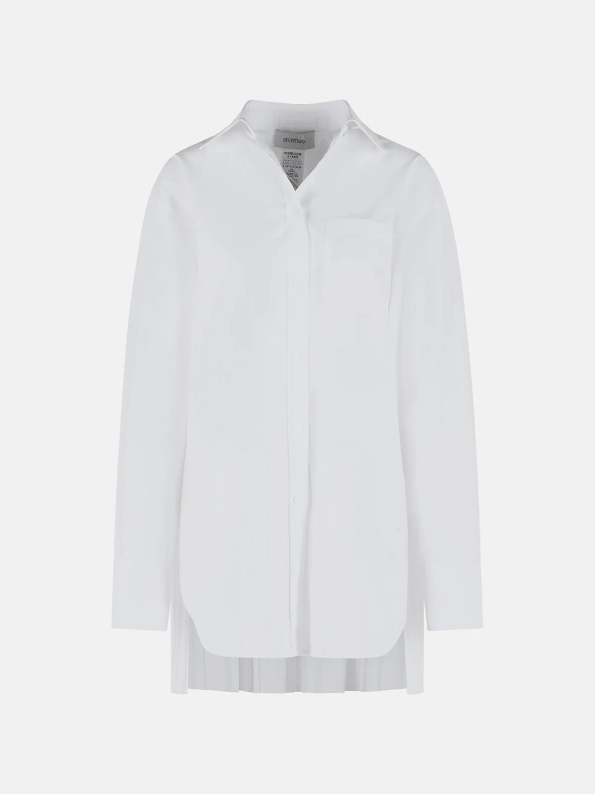Manufacture code: 2612191031 001 Retail code: 2612191031 001 Pointed collar, front button fastening, chest patch pocket, button cuffs, decoration with light point on the sleeve, flared hem with wide side split, back pleat, decorative chain belt Main: 77% cotton, 23% polyester Made in Italy