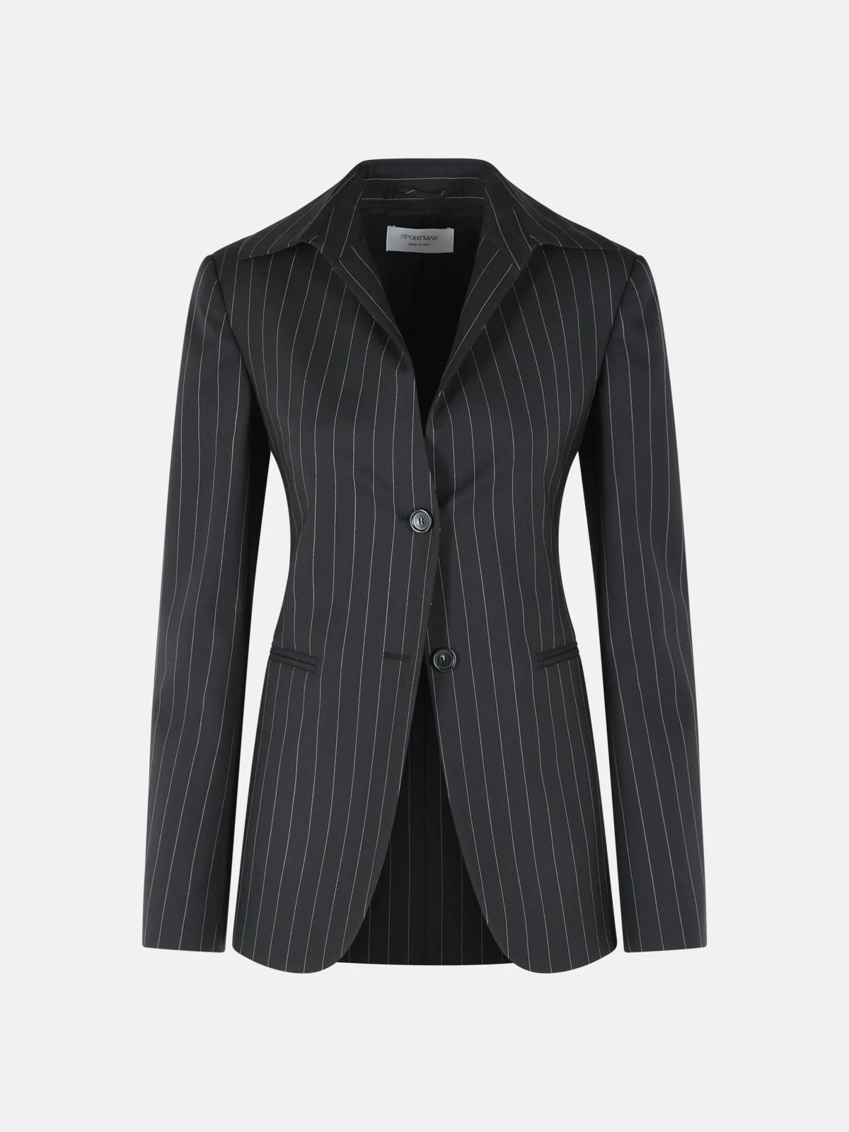 Manufacture code: 2612041041 004 Retail code: 2612041041 004 Stretch technical gabardine wool blazer jacket with pinstripe pattern and inner lining, shirt collar with feet, single-breasted closure with visible button, contoured pleat and cuts on the back, tight fit Main: 54% virgin wool, 44% polyester, 2% elastane Made in Italy