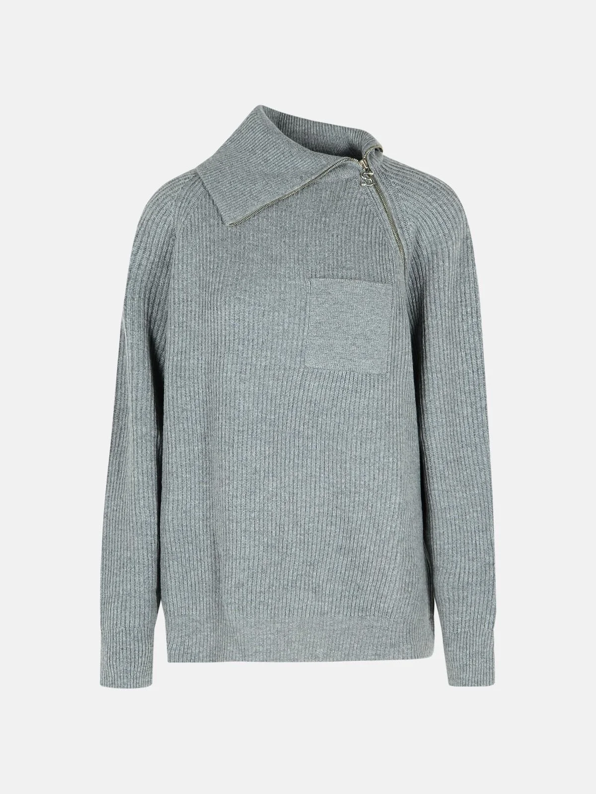 'SALPA' CASHMERE BLEND SWEATER WITH MEDIUM GREY ZIP