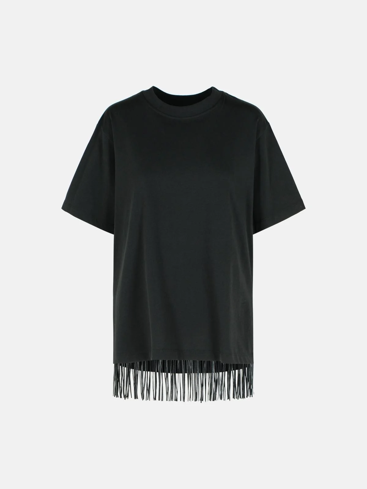 Manufacture code: 2522946045 003 Retail code: 2522946045 003 Pure cotton jersey T-shirt, straight fit, regular, rounded neckline finished with rib, short sleeves, detail of long fringes in jersey coated on the back Main: 100% cotton Made in Italy