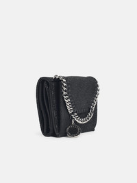 BLACK 'FALABELLA TRI FOLD' WALLET IN 'SHAGGY DEER'