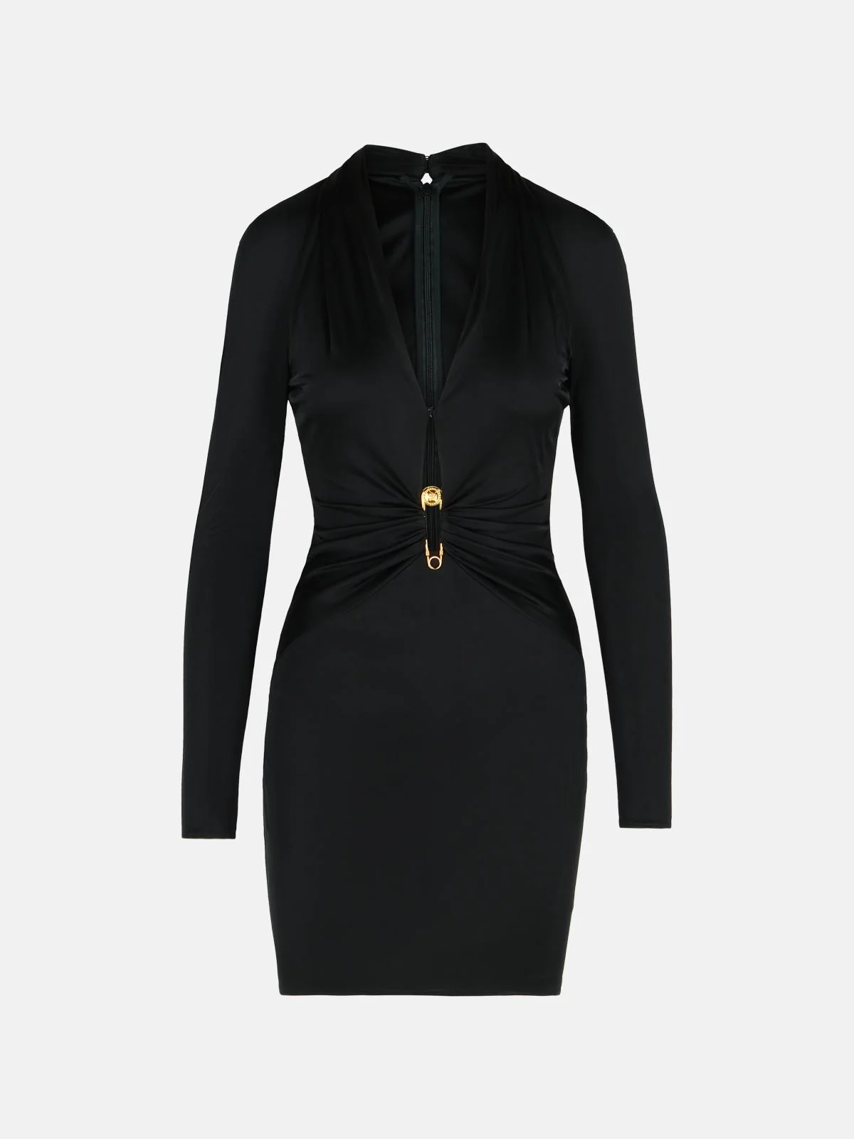 Manufacture code: 1020822 1A12497 1B000 Retail code: 1020822 1A12497 1B000 'V' neckline, front 'Safety Pin' detail and button, decorative drapes, back closure with hooks and invisible zip, bodysuit petticoat with hooks and back zip Main: 100% calf leather Made in Italy