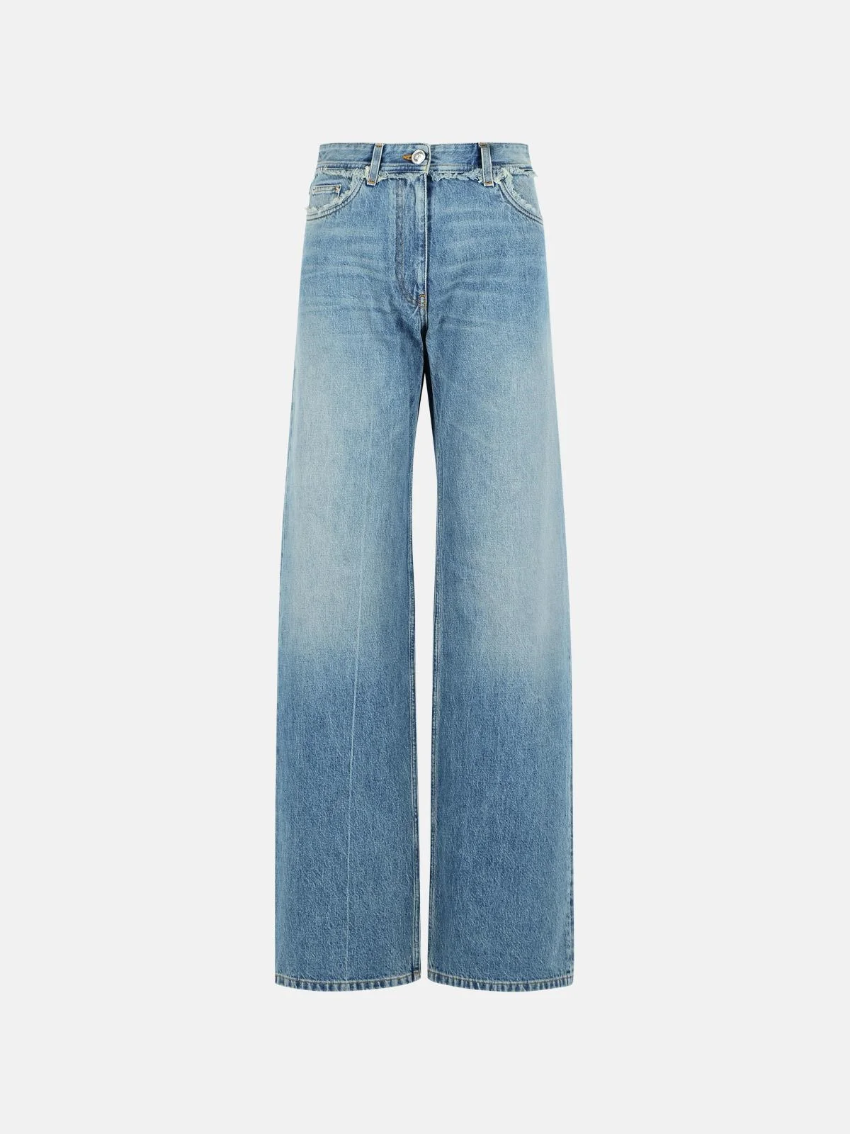 Manufacture code: 1023064 1A17046 1D800 Retail code: 1023064 1A17046 1D800 Belt loops, zip closure and 'Medusa' decorated button, five-pocket style, top detail with fringes, decorative stitching at the back, straight leg Main: 100% cotton Made in Italy