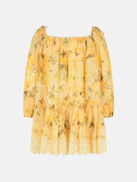 'CASCADIAN' YELLOW COTTON MINI DRESS 'BOTANICAL FLORA'