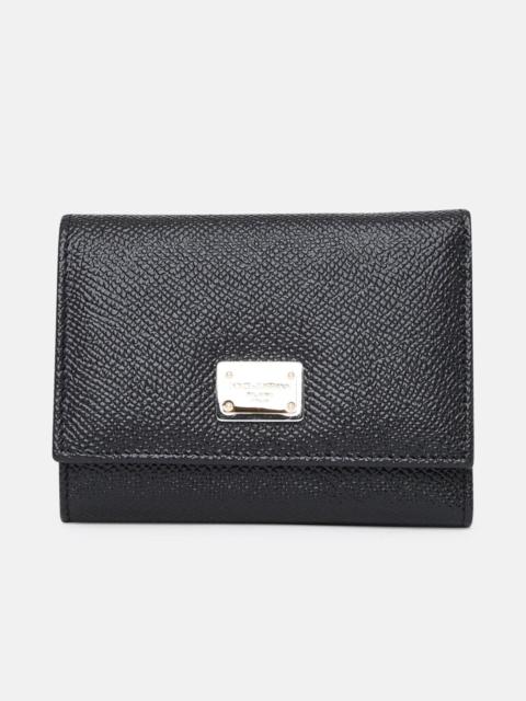'FOUR STITCHES' COMPACT BLACK LEATHER WALLET