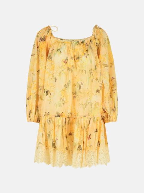 'CASCADIAN' YELLOW COTTON MINI DRESS 'BOTANICAL FLORA'