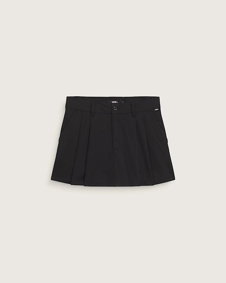 Style VN000VFNBLK Inspired by classic uniform styles, this mini skirt brings playful sophistication to your everyday look. The structured box pleats create a flattering flare and freedom of movement, while the clean waistband and invisible side zipper offer a sleek silhouette. Crafted from organic cotton chino fabric with a soft, peached finish for all-day comfort. Details - Relaxed fit for easy movement - Structured box pleats create flattering flare - Invisible side zipper for a smooth look - Clean waistband for a polished finish - Made with soft, peached organic cotton chino fabric - 98% organic cotton, 2% Elastane