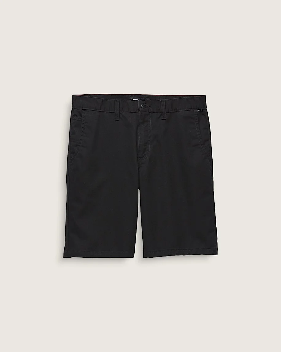 Style VN0A5FJXBLK The Authentic Chino Relaxed Short is made for everyday wear with its soft fabrication. The chino shorts include front hand pockets, rear welt pockets with button closures, and embroidered Drop V bartackss. The V belt loop detail on the back waistband and checkerboard twill taping added for an iconic Vans look while ensuring top quality. Details - Classic chino styling with modern updates - Checkerboard twill taping on internal fly facing - Drop-V bartacks reinforce high-stress areas - V-shaped belt loop at back - Outseam: 20'' - Inseam: 9.25'' - Relaxed fit for everyday ease - Model is wearing size 32 or Medium - 64% cotton, 34% polyester, 2% LYCRA® fabric