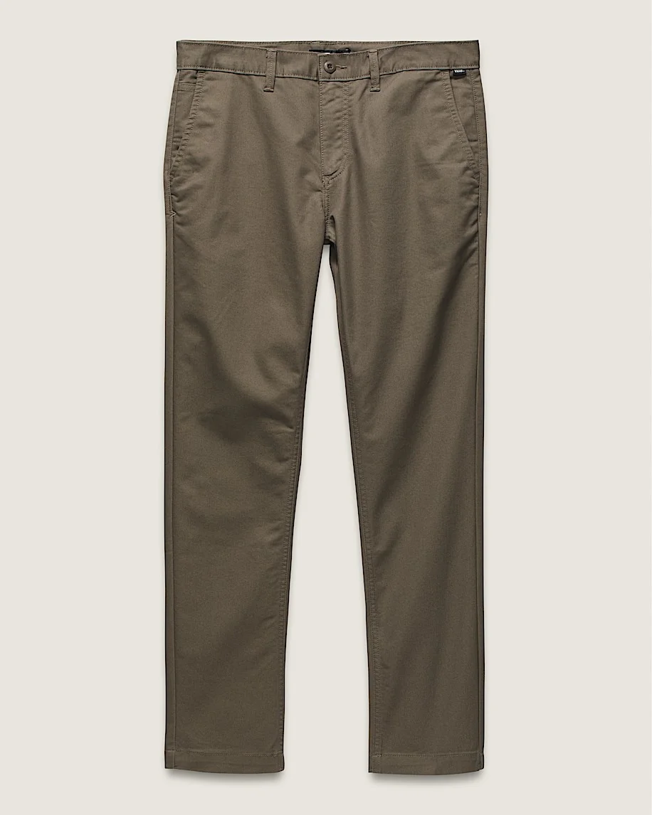 Style VN000HZA9JC Fit, style, and durability' we put a lot of thought into our pants, so you don't have to. The Authentic Chino Slim Pants is a versatile chino pant built with an improved, soft fabrication. This classic chino features plenty of pockets and an embroidered Drop V bartack for reinforcement. Details - 58% Cotton, 40% Polyester, 2% Elastane fabric - Soft cotton-rich fabrication - Classic chino front hand pockets with coin pocket - Embroidered 'Drop-V' bartack - Rear welt pockets with button closure - 'V' belt loop detail on back waistband - Checkerboard twill taping on internal fly facing - Flag label sewn internally to hem for added branding when cuffed - Slim fit - 14'' leg opening