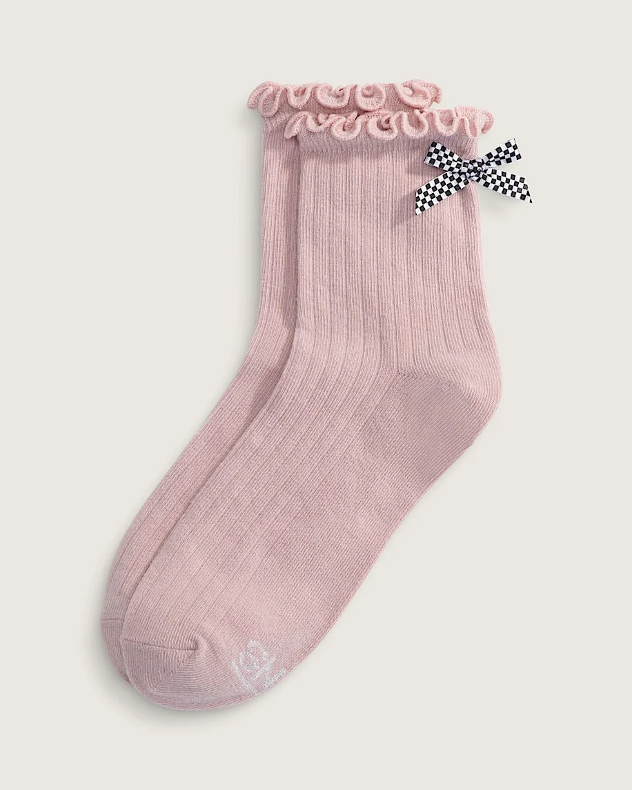 Style VN000X41O3N The Bow Back Crew Socks keep it clean with just the right amount of detail. A soft cotton blend brings everyday comfort, while metallic thread adds a low-key shimmer. Details - Cotton blend offers comfort and breathability - Metallic thread adds subtle visual texture - Bow detail at the cuff for a unique touch - 55% cotton, 40% polyester, 3% metallic, 2% elastane - Small: US Mens 3.5 - 6 / US Womens 5 - 7.5 - Medium: US Mens 6.9 - 9 / US Women’s 8 - 10.5 - Large: US Mens 9.5 - 13 / US Womens 11 - 14.5