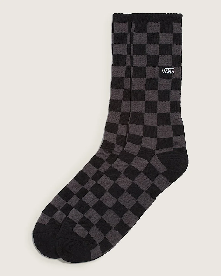 Style VN000QBDBA5 The Checkerboard Crew Sock brings iconic Vans style to a classic ribbed crew sock with a checkerboard jacquard art. Solid heel and toe details, along with an embroidered Vans logo, round out this heritage design. Details - Crew height for a secure, stay-put fit - Allover checkerboard jacquard art - Solid heel and toe - Vans logo knit at the cuff - Sold as a single pair - 48% nylon, 47% cotton, 4% elastodiene, 1% elastane