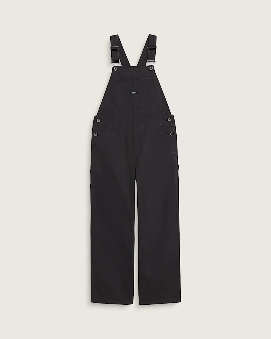Style VN000VF5BLK These versatile overalls are built to last, with sturdy cotton canvas construction and plenty of pockets for all your essentials. The adjustable straps and relaxed fit allow for easy movement, whether you're working on projects or just hanging out. With classic Vans detailing like the front chest pocket and small logo, these overalls offer timeless style that can handle whatever your day brings. Details - Front chest pocket for easy access to small items - Multiple pockets throughout for storage - Adjustable straps for a custom fit - Side button closures for easy on and off - Relaxed fit for comfort and mobility - Made with 100% BCI Cotton for sustainable comfort