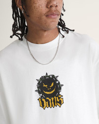 Style VN000PE7WHT Give a little grin in the Happy Spike T-Shirt, a spooky season special with long-lasting screen print artwork of a ghoulish pumpkin atop a scripted Vans logo. Short sleeves make for casual, everyday wear, even after Halloween's over. Details - Screen print artwork - Classic crewneck for everyday wear - Ribbed collar adds structure and shape - 100% cotton