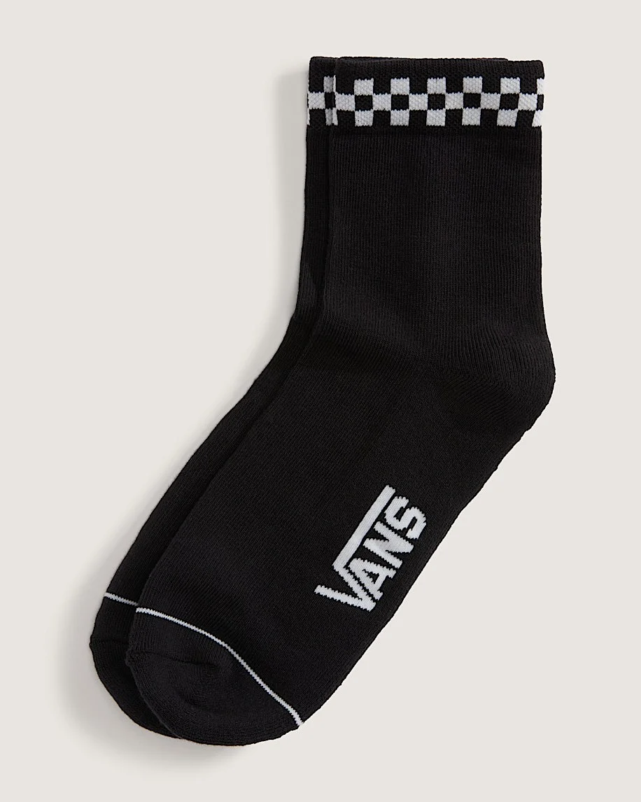 Style VN000QBKBLK The Peek-A-Check Half Crew Socks serve up subtle edge with signature Vans style. Built with cushioned soles for comfort and finished with jacquard checkerboard art, they’re the kind of pair that makes every step feel a little more off the wall. Details - Half crew height for versatile coverage - Cushioned sole for comfort underfoot - Jacquard checkerboard and Vans logo - Sold as a single pair - 75% cotton, 15% polyester, 8% nylon, 2% elastane - Small: US Mens 3.5 - 6 / US Womens 5 - 7.5 - Medium: US Mens 6.9 - 9 / US Women’s 8 - 10.5 - Large: US Mens 9.5 - 13 / US Womens 11 - 14.5