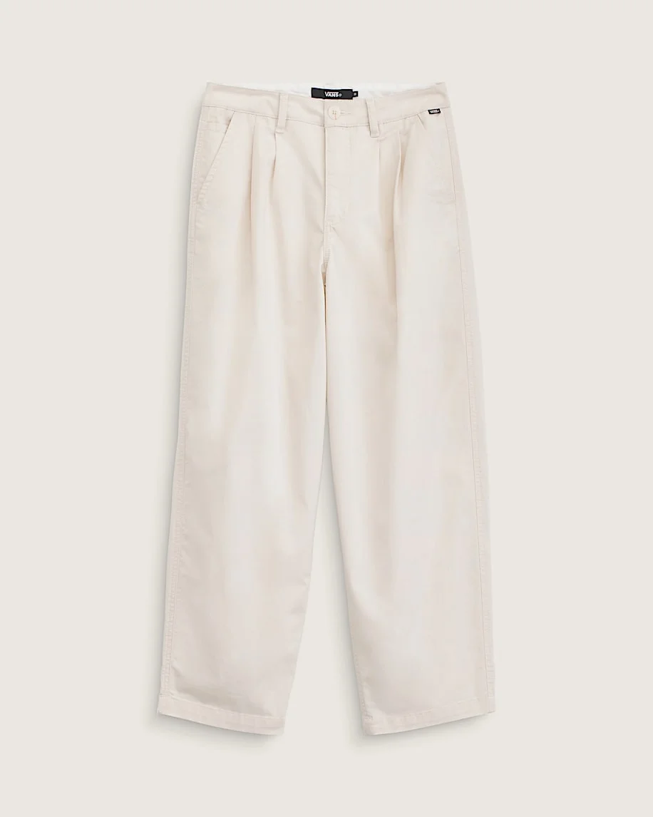Style VN0010CMDJR These relaxed pants embody Vans' casual California cool. With a roomy fit and pleated front, they offer all-day comfort for kicking back or hitting the town. The wide legs and high waist create a laid-back silhouette that pairs perfectly with your favorite Vans sneakers and tee for an easygoing look. Details - Front pleats add retro-inspired style - Side pockets for stashing essentials - Back welt pockets with Vans logo tab - Relaxed fit for easy movement and a laid-back feel - 100% cotton