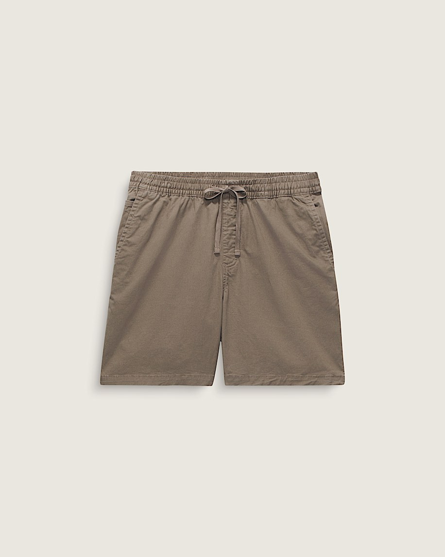Style VN0A5FKD9JC The Range Relaxed Elastic 18'' Shorts are an upgraded take on the classic volley-short with an updated elastane fabrication and relaxed fit. The elastic waist and drawcord add comfort and ease of movement, while the front slash hand pockets and rear welt pockets offer plenty of stash-and-go portability. Branded details add a finishing touch. Details - Stretch fabrication for easy movement - Comfortable elastic waist with a drawcord - Front slant hand pockets with coin pocket at the right - Rear welt pockets - Embroidered 'Drop-V' bartack on front and rear pocket - Key loop at waistband - Outseam: 18" - Relaxed fit for easy movement and a laid-back feel through the hip and thigh with a regular rise - 98% organic cotton, 2% elastane fabric