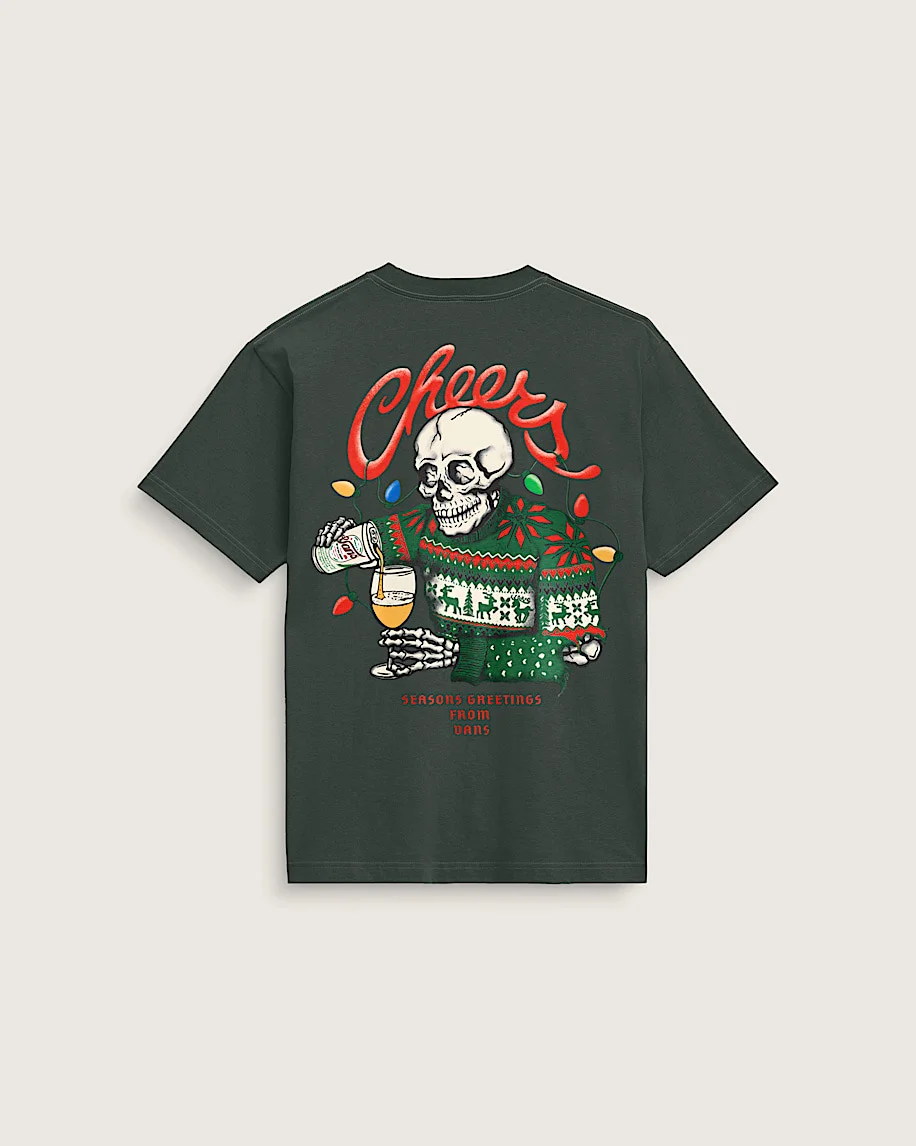 Style VN0012332LN The Seasons Greetings T-Shirt brings a festive twist to a core Vans silhouette with a high-impact, holiday-themed graphic. Cut from soft cotton in a loose fit for added ease, it delivers comfort and personality all season long—perfect for anyone who keeps their celebrations Off the Wall. Details - Seasonal back artwork delivers bold, expressive holiday energy - Crew neckline keeps the fit classic and easy - Soft handfeel provides all-day comfort - Loose fit offers relaxed freedom of movement - 100% cotton