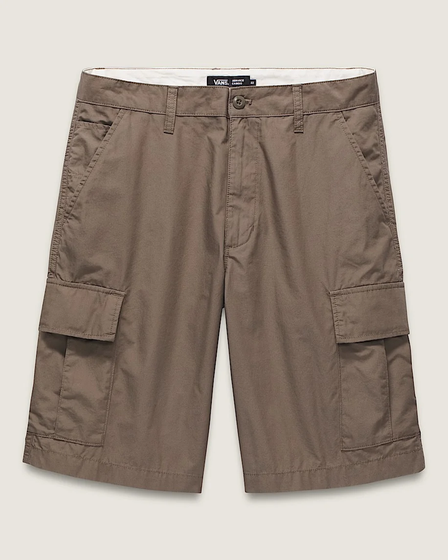 Style VN000M389JC The Service Cargo Loose 22'' Shorts give you all the style, comfort, mobility, and skateability you need to make a personal statement on and off the board. These midweight cotton twill shorts have a looser fit through the hip and thigh with tons of pockets for added storage, including classic cargo pockets. They also feature a 'V' belt loop detail on the waistband. Details - Midweight cotton twill fabrication - Front slant hand pockets with coin pocket on the right - Rear flap pockets with hidden button closure - Cargo pockets with flap and hidden button closure - 'V' belt loop detail on back waistband - Loose fit for a roomy look and a free-flowing shape - Outseam: 22" - 100% cotton