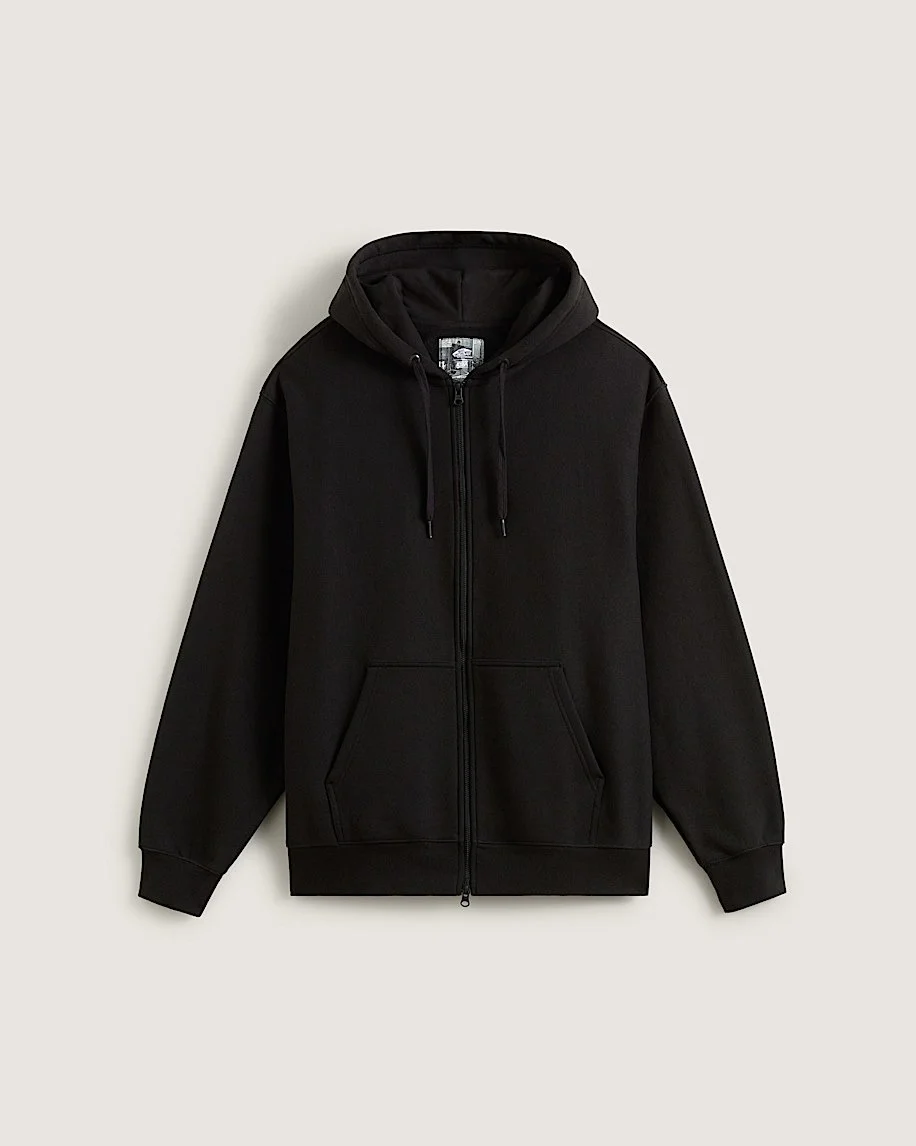 Style VN000Q77BLK Atiba brings his personal touch to a skate wardrobe staple. In a custom solar orange color, this ultra-relaxed zip hoodie stands out while staying understated. A two-way zipper for adaptability, brushed French terry for a smooth exterior and soft interior, and 5-Checkerboard embroidery add premium details. Custom oversized Vans logo art from legendary graffiti artist Eric Haze adds signature touches on the hood and sleeve of this warm, comfortable hoodie. Details - Long sleeve zip front hooded sweatshirt - 435g brushed back French terry fabrication - Raglan sleeves with cuffs - Double-layered hood with drawstring - Custom high-visibility screenprinted Vans logo artwork by graffiti artist Eric Haze on hood - sleeve - Dual zipper - Baggy fit - 73% cotton and 27% polyester material