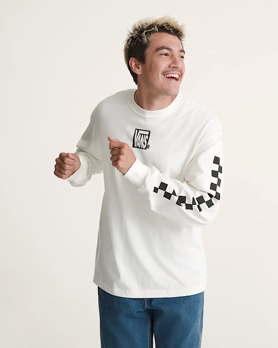 Style VN000PJUC9F With soft organic cotton jersey for a natural feel, the TeamTeam Long Sleeve T-Shirt features screen print artwork for long lasting design of the Vans logo on the chest and patterns down both sleeves. The roomy fit offers a loose, free flowing shape, while an overdye wash makes for a vintage look. Details - Long sleeve crew neck T-shirt - Ribbed neckband and jersey fabrication - Screen print artwork - Overdye wash for a vintage look - Loose fit - 100% organic cotton