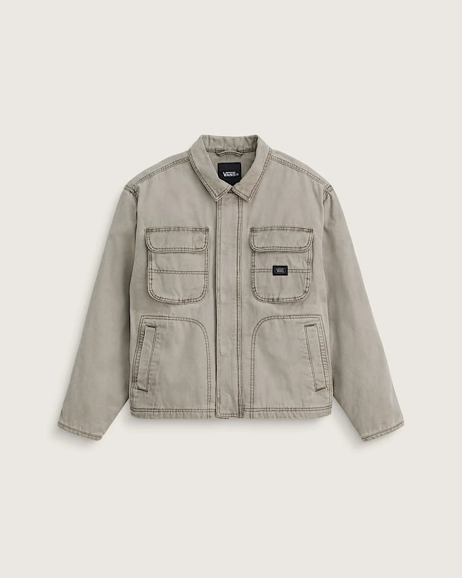 Style VN000T6K1O3 This versatile canvas jacket brings workwear-inspired details to your everyday wardrobe. The lightweight fabric and relaxed silhouette offer easy comfort, while the chest pockets and garment wash add functional style. Pair it with jeans or chinos for a casual, go-anywhere look that's authentically Vans. Details - Lightweight canvas construction for breathable comfort - Zip closure for easy on and off - Chest pockets add functional storage - Garment wash creates a soft, broken-in feel - Hand pockets for added convenience - Collared neckline for a classic touch - 100% cotton