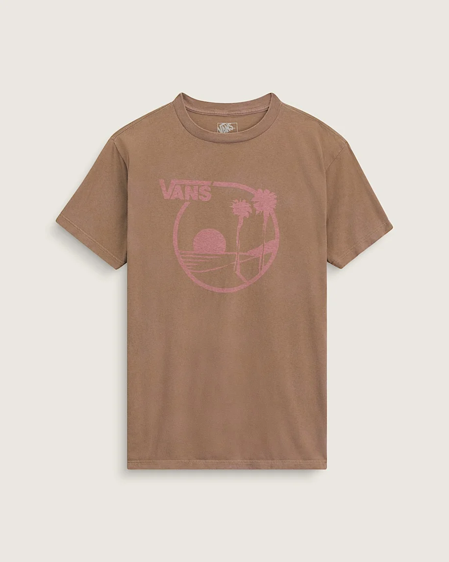 Style VN0010JFBRO A comfy tee gets a rework with a calming sunset graphic, pulled from the '80s Vans archives, on the front. A trusty silouette with a hint of vintage charm makes this a tee you'll reach for again and again, from sundown to sun up. Details - Short sleeve vintage tee shirt - Original '80s graphics from the Vans archives - Material composition may vary - Color lives on a spectrum. Shades may vary slightly from piece to piece for an organic, lived-in feel. - No two pieces are exactly alike. We work with a wide range of secondhand and vintage garments, so expect slight variations in color, fabric, and fit. - Made from secondhand materials, fabric contents may vary. - Imperfections are intentional. Fading, stitching, and subtle wear all add to the story your piece carries.