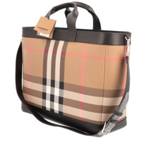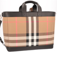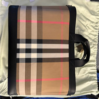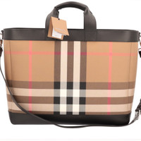 This Burberry briefcase showcases a refined tan and black plaid pattern, crafted from high-quality materials for durability. Its structured design offers a spacious main compartment, making it ideal for professional settings or travel. The elegant combination of colors and classic design elements ensures it stands out while remaining versatile. Measurements: Length across: 17” Height: 14" Width/Depth: 6” Handle Drop: 4.72” Hardware Silver Tone Exterior Material Leather and canvas Origin: Italy Interior Material Fabric