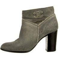 CHANEL interlocking CC lined boots Chanel Leather Ankle Boots From the 2013 Collection by Karl Lagerfeld Color: Grey Boot style:Round-Toes Heels: 3.5" Color: Grey Shoe Size: 10 Foreign Size: IT 41 Fit: This style typically runs a full size small. Very comfortable boots. I am a size 9 and this size fits me. Please note these run small. No Box