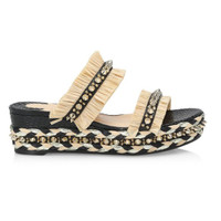 Christian Louboutin Voltinoudou Spiked Raffia & Snakeskin-Embossed Wedges